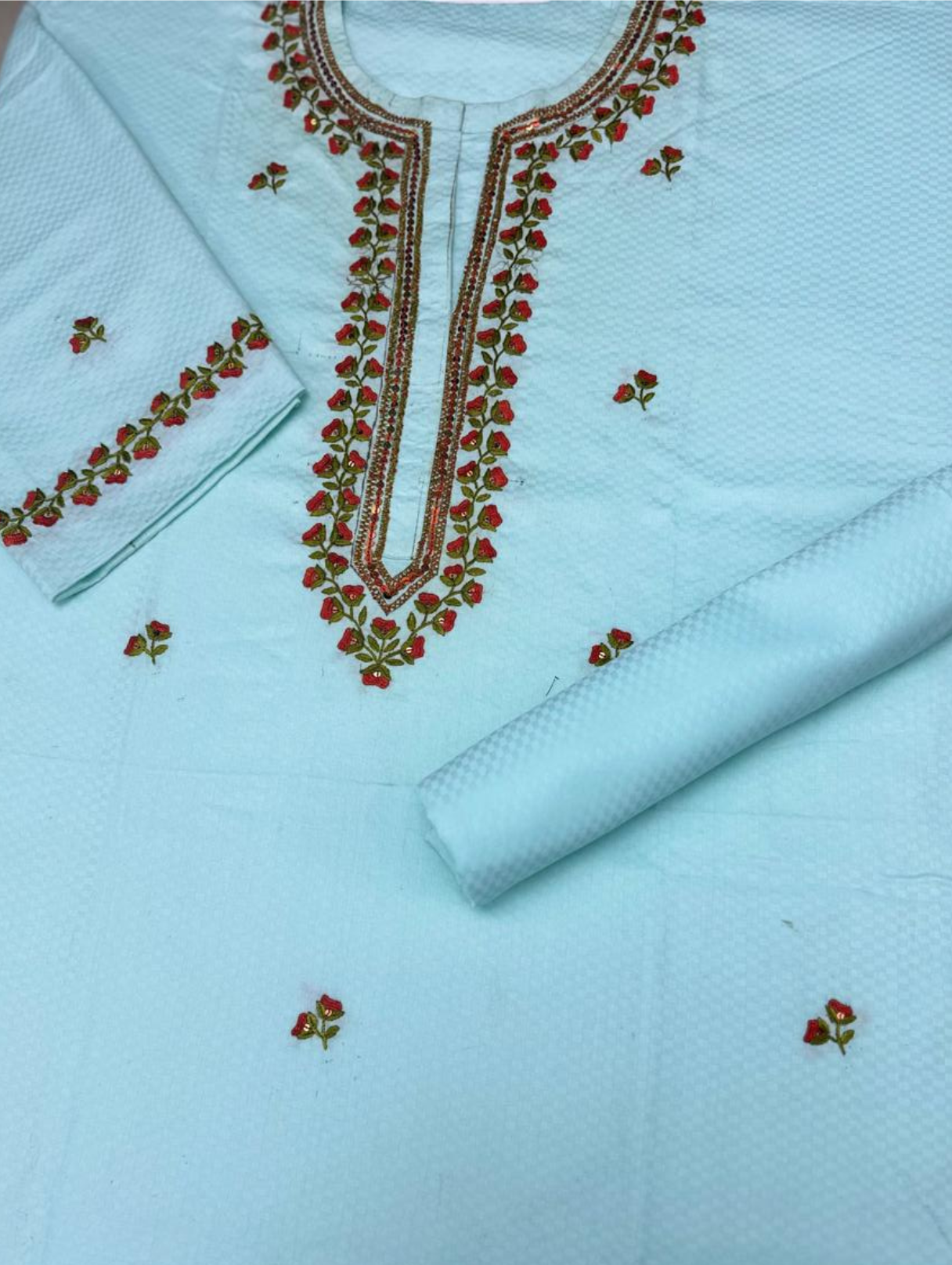 - Set Includes: Unstitched Dress Fabric: Shirt 42-inch + bottom 2.5 meters.