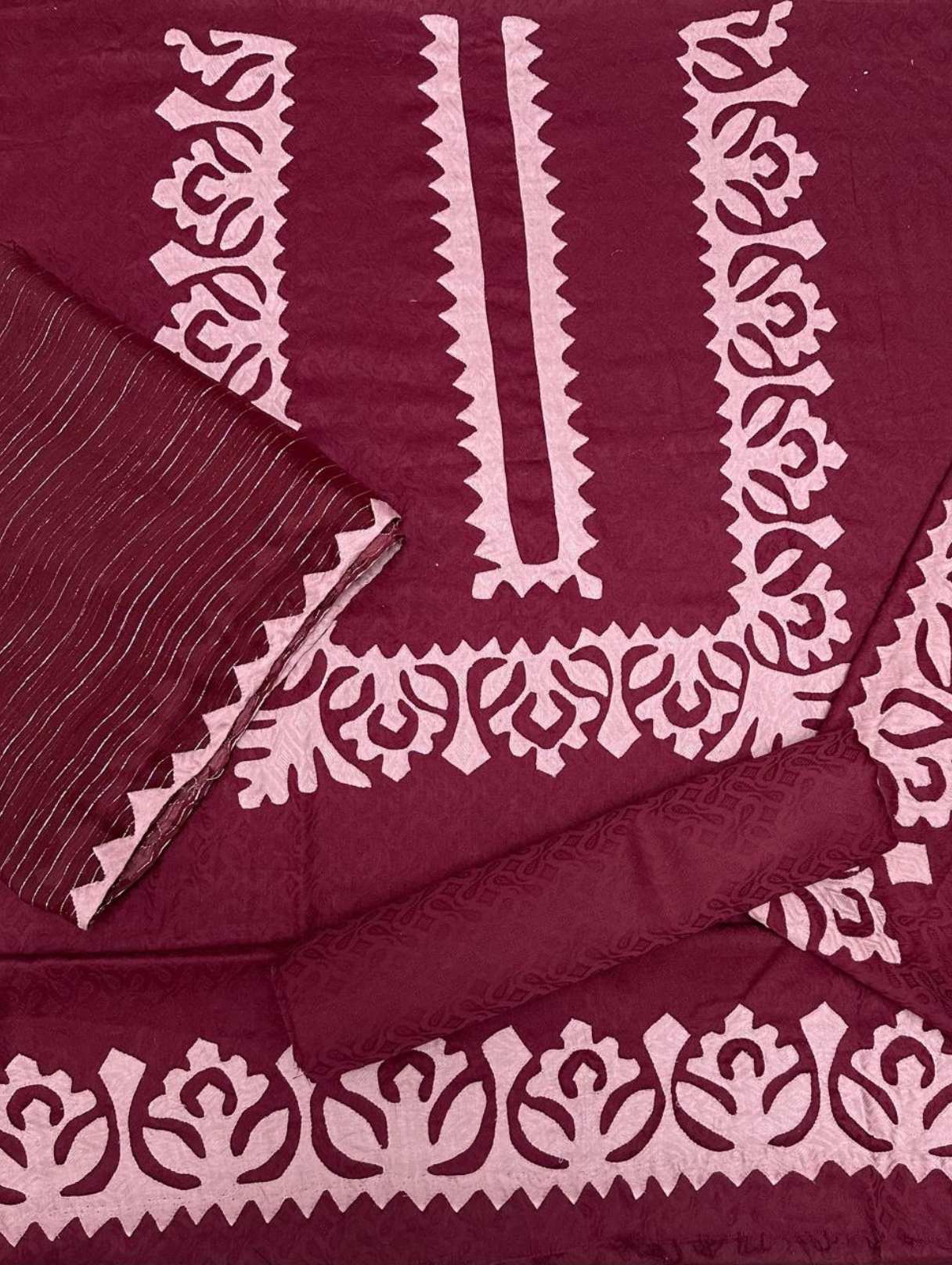 Crimson Bloom Maroon With Pink Applique Unstitched 4-Piece Dress