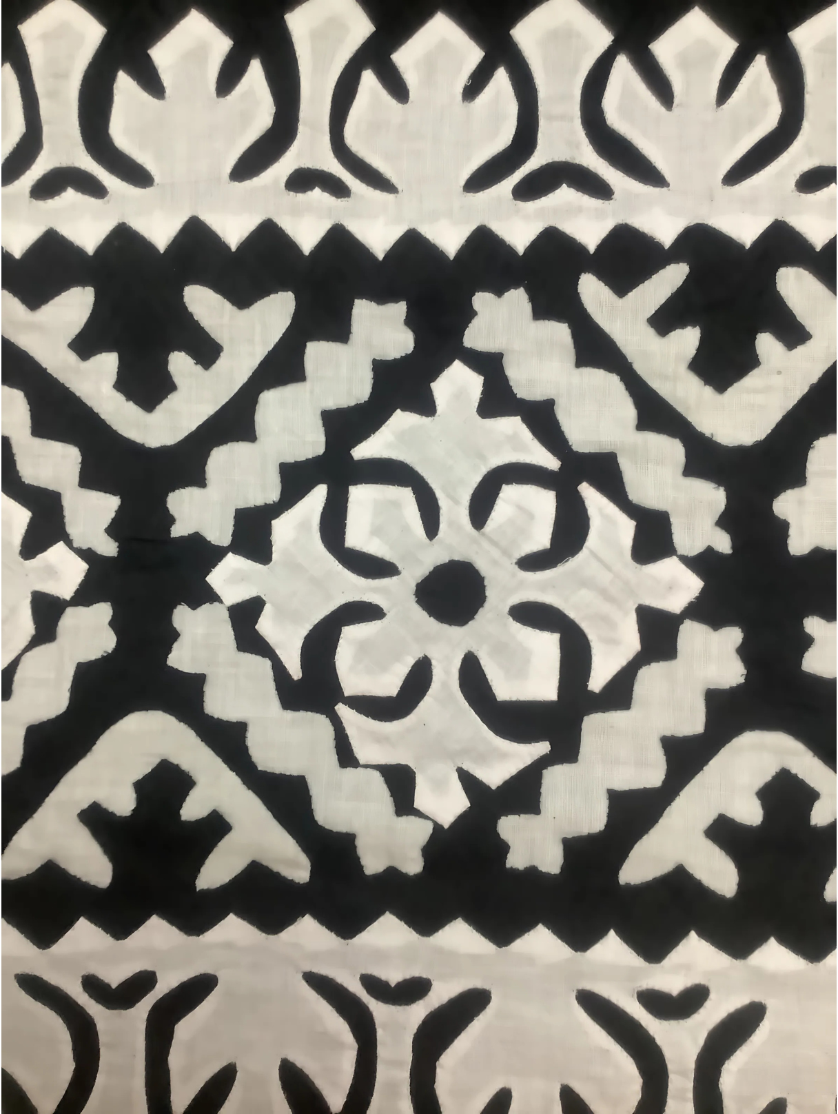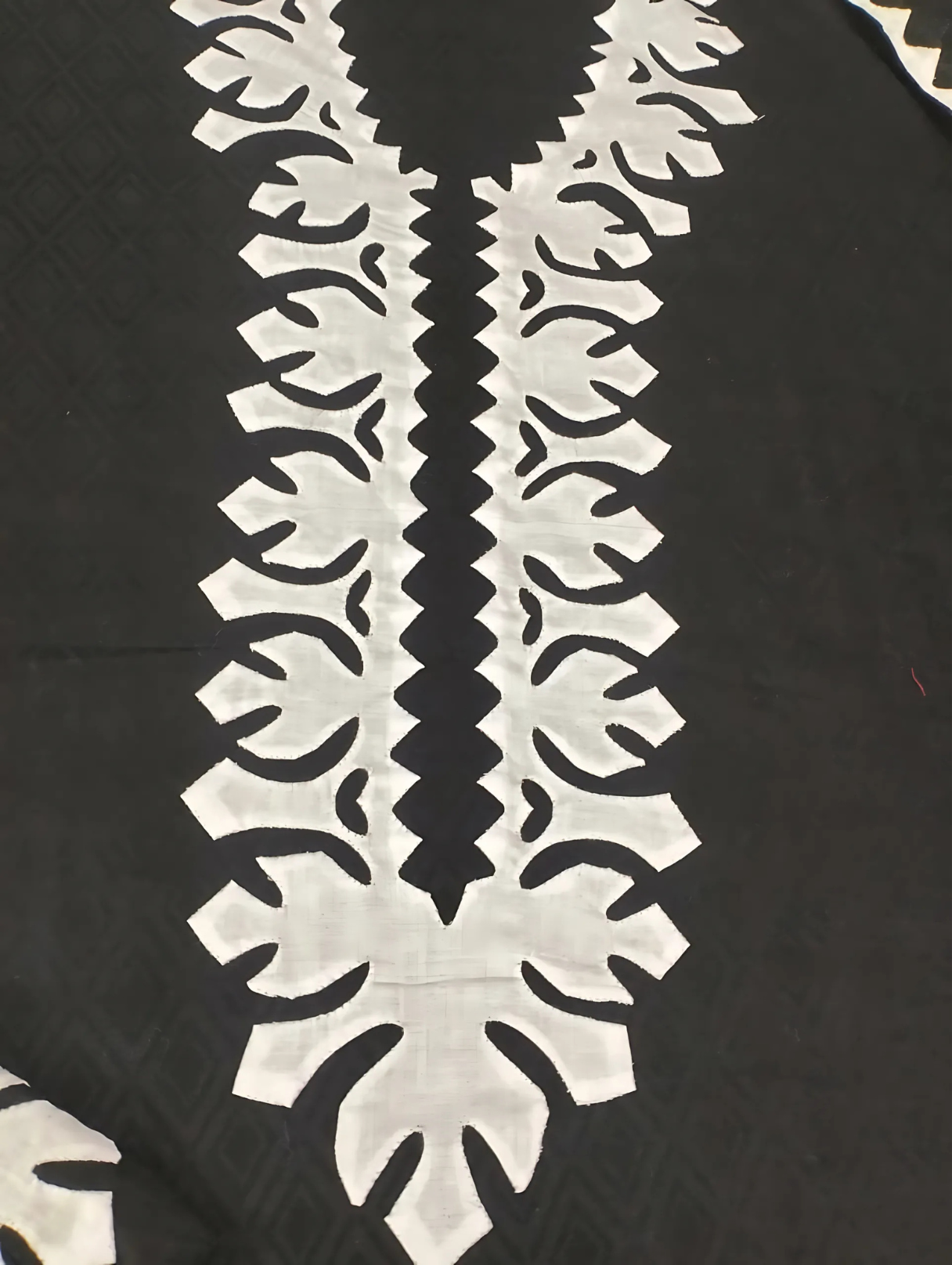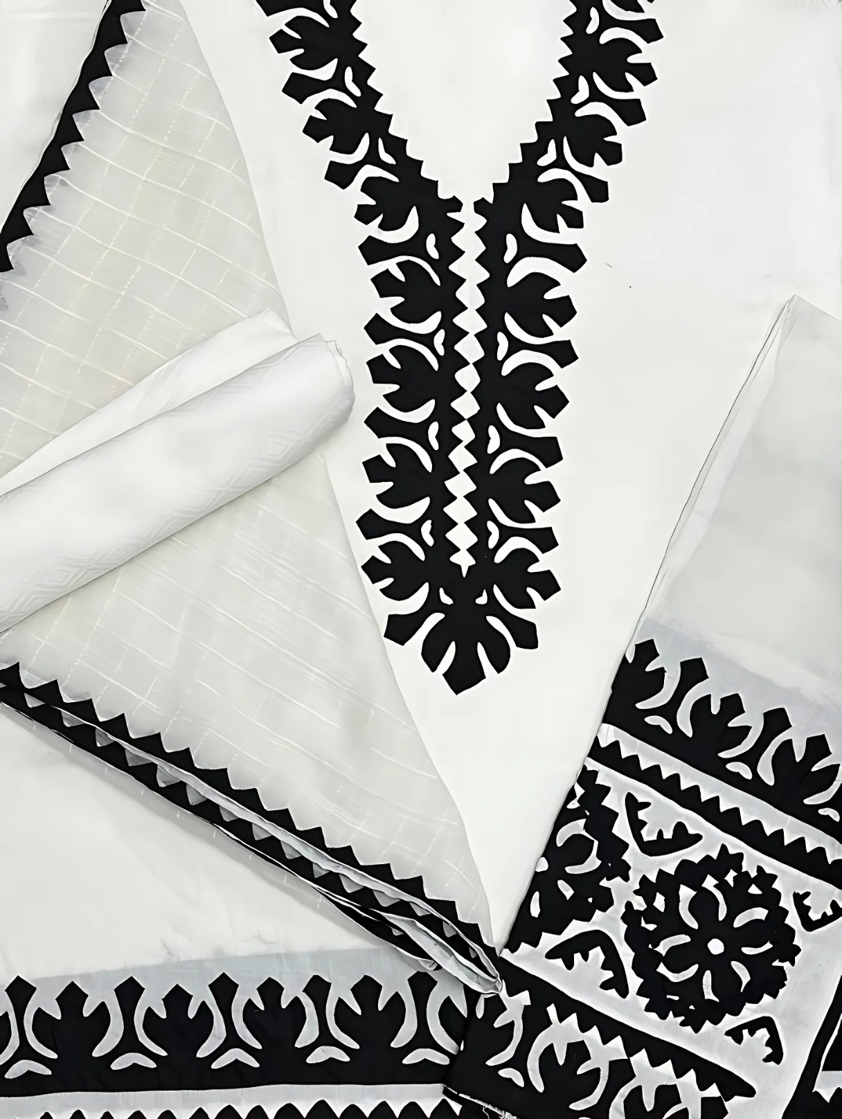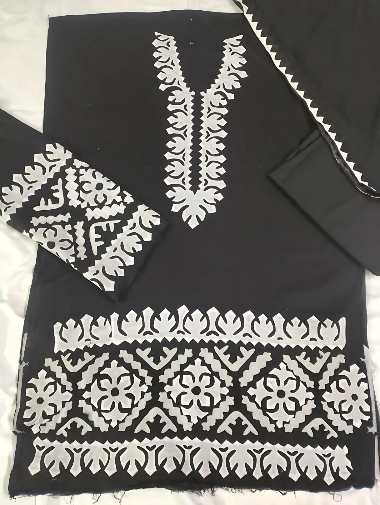 Handcrafted Jet Black Applique Work Unstitched 4-Piece Suit