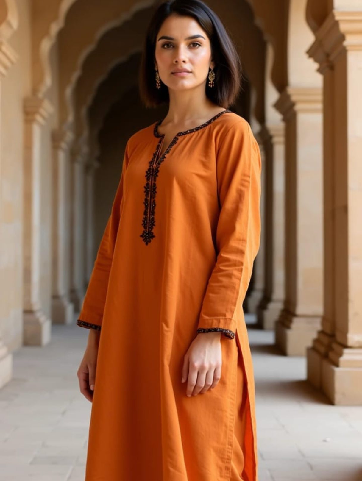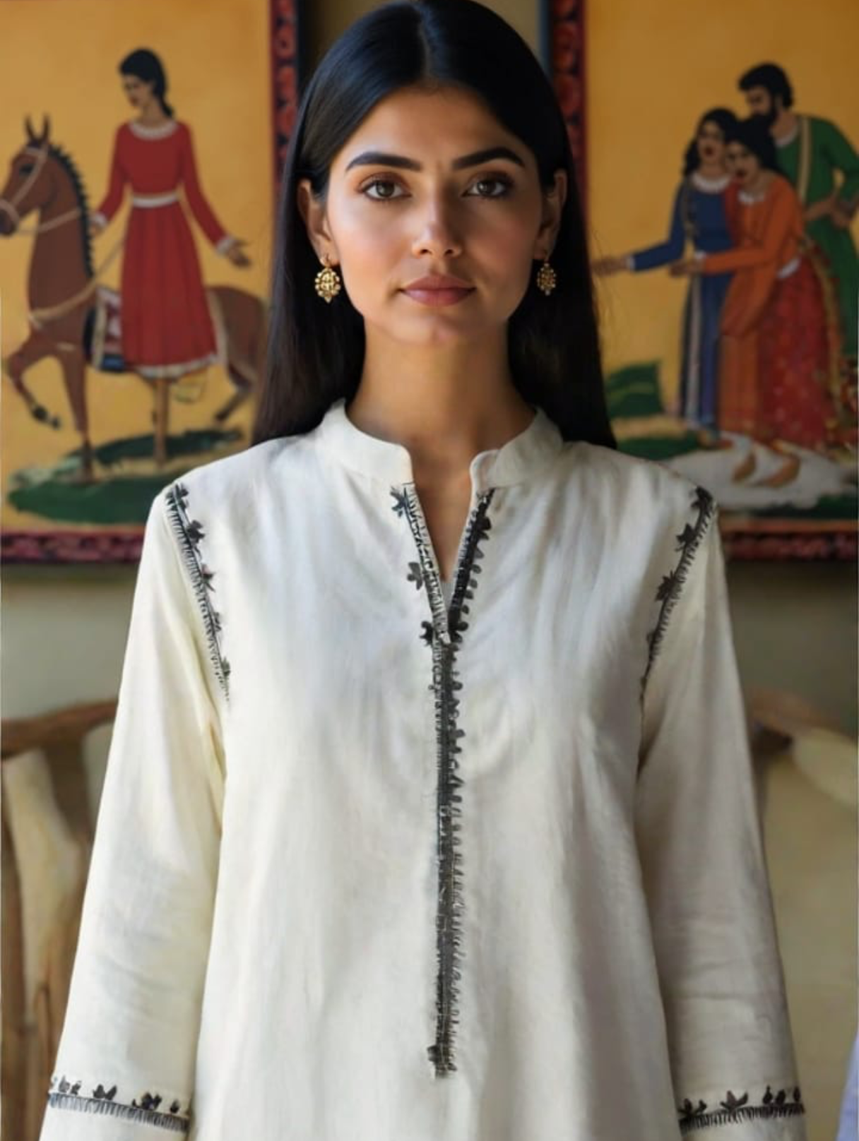 - Embroidery: Hand-Embroidered Detailing on neckline, shoulder sleeves, and hemline.